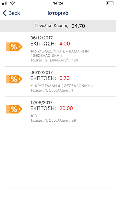 όπως: την ημερομηνία που εξαργυρώθηκαν τα κουπόνια, το συνολικό ποσό της έκπτωσης, το κατάστημα στο οποίο έγινε η συναλλαγή και το ταμείο.